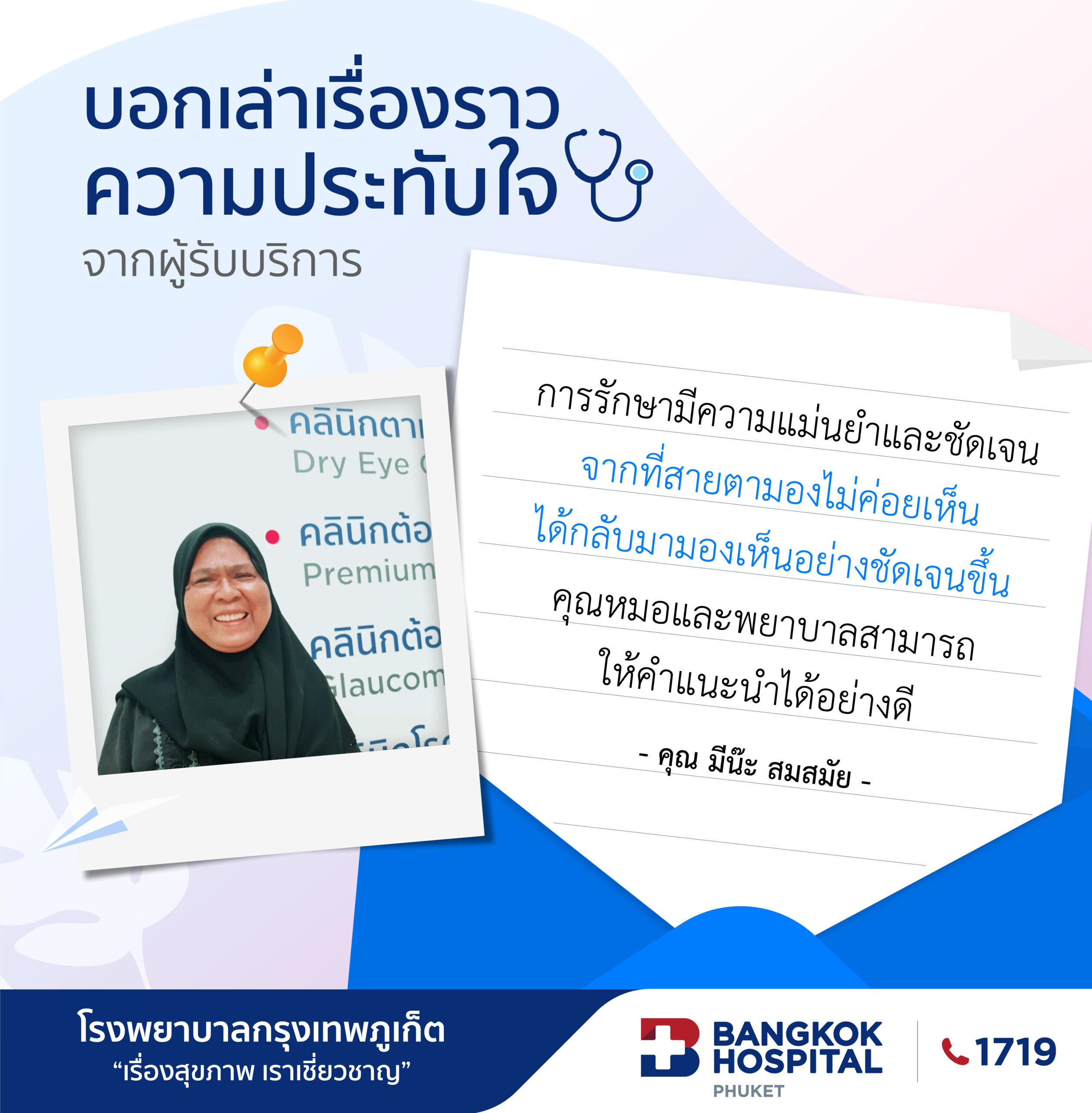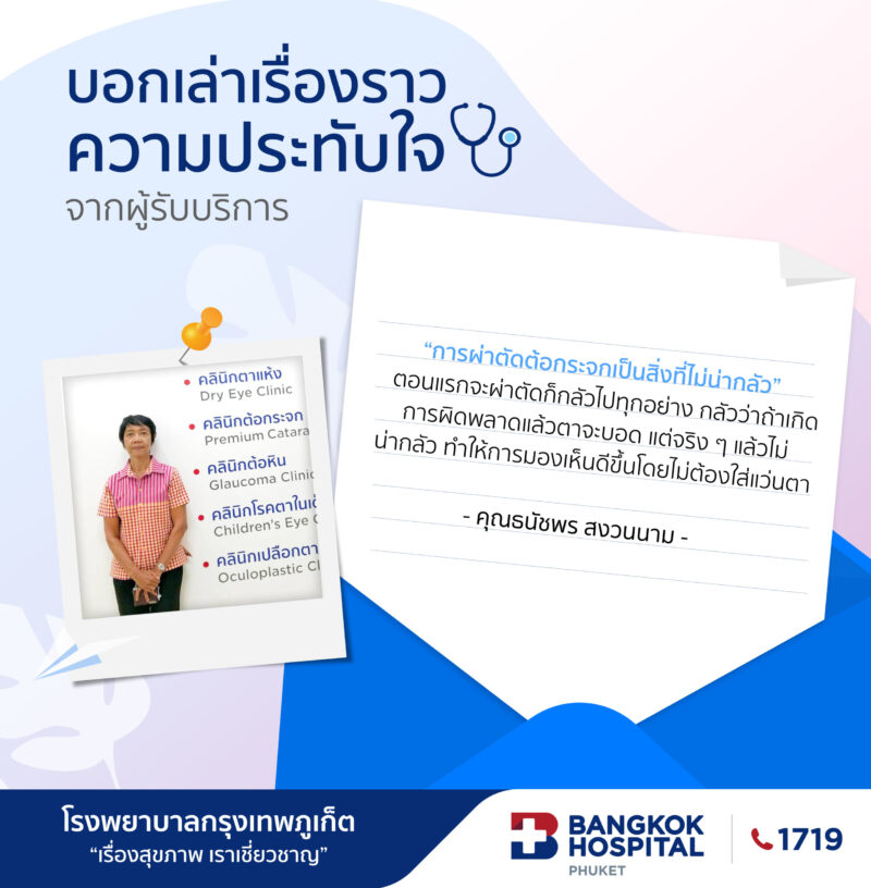 ตอนแรกจะผ่าตัดก็กลัวไปทุกอย่าง กลัวว่าถ้าเกิดการผิดพลาดแล้วตาจะบอด แต่จริง ๆ แล้วไม่น่ากลัว ทำให้การมองเห็นดีขึ้นโดยไม่ต้องใส่แว่นตา